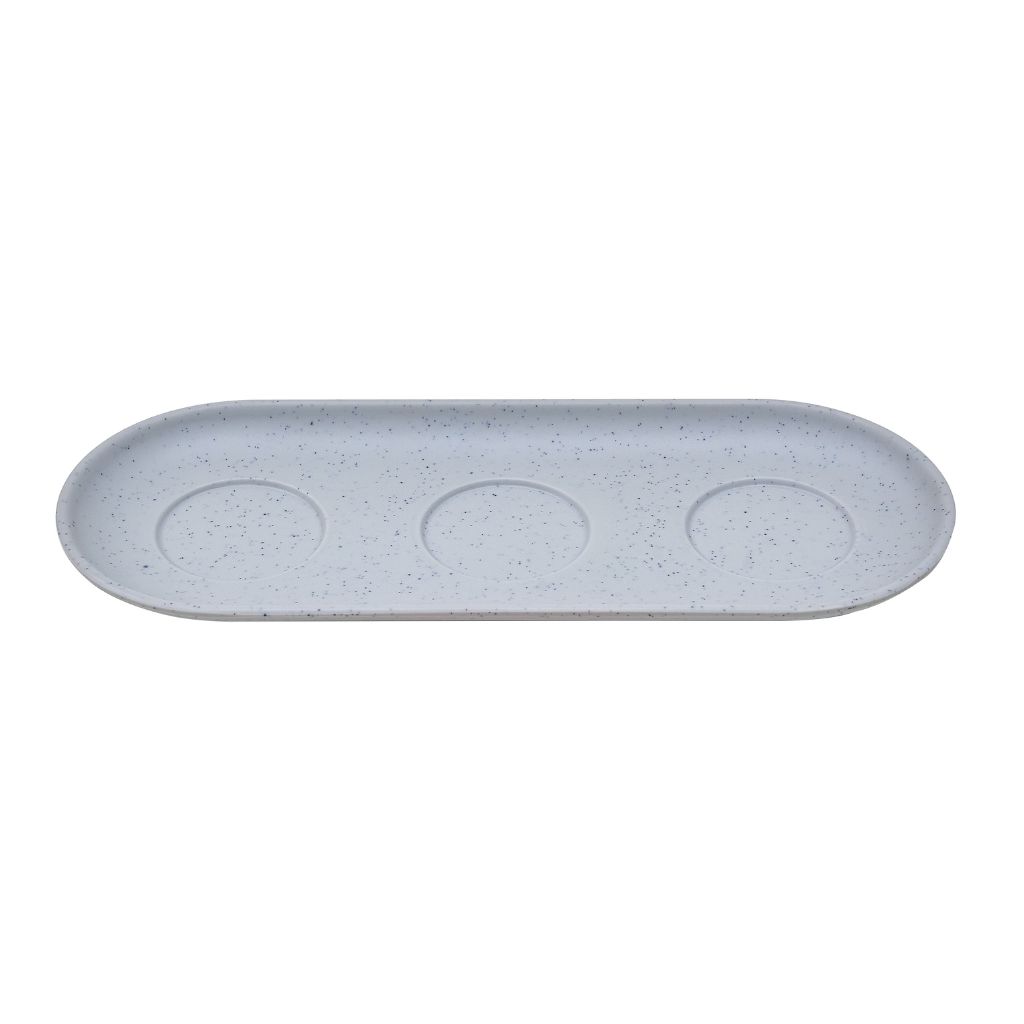 Su elegante tono gris claro con sutil efecto moteado y sus formas orgánicas aportan un estilo actual y equilibrado que realza cualquier presentación gastronómica, creando una mesa armoniosa y profesional.