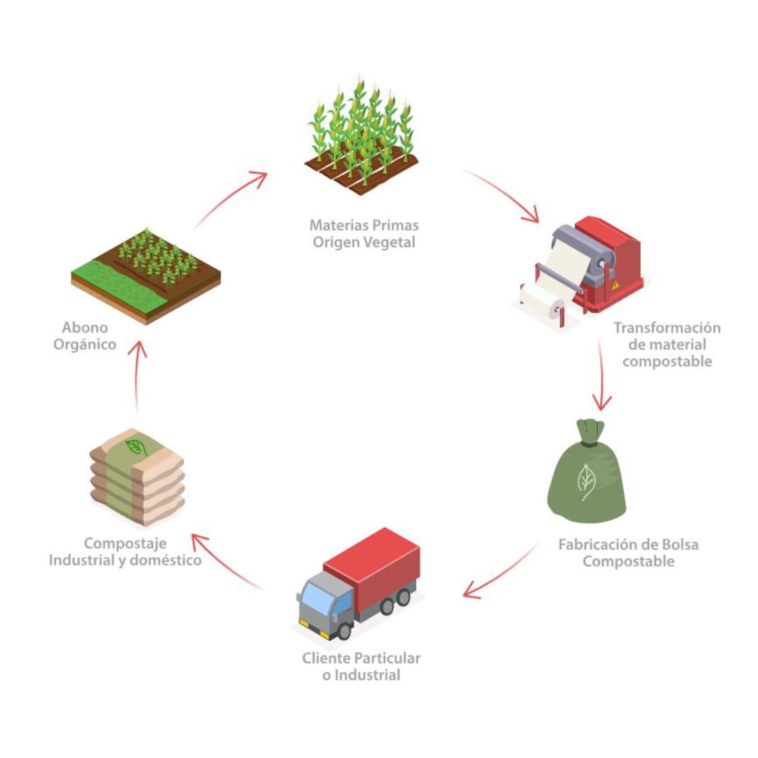 Una de las principales ventajas de esta bolsa es su composición 100% biodegradable y compostable, certificada bajo normativa europea, lo que permite reducir el impacto ambiental en comparación con bolsas convencionales.