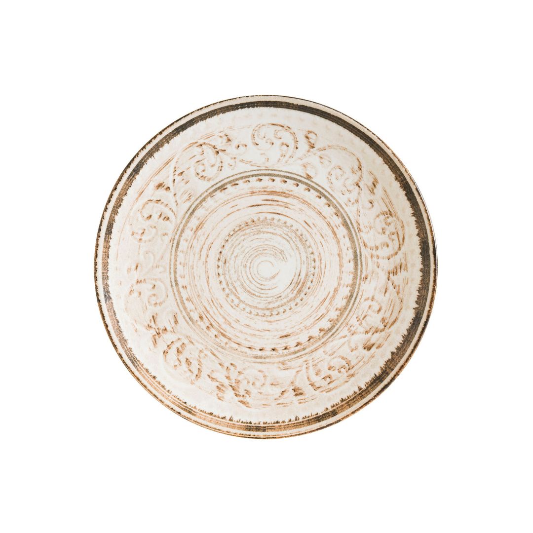 Los platos de Bitnia destacan por sus patrones circulares y ornamentales, inspirados en técnicas tradicionales de cerámica. Sus grabados sutilmente marcados y sus curvas armoniosas evocan la belleza de lo atemporal.