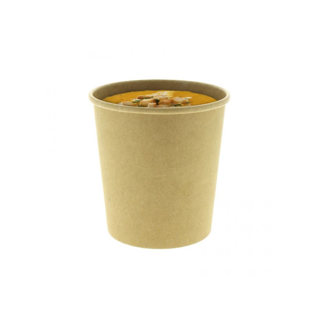 La sopera de cartón kraft es una solución práctica para negocios de hostelería, restauración y comida para llevar que necesitan un envase funcional para servir y transportar elaboraciones líquidas o semilíquidas. Su formato cilíndrico en cartón kraft natural ofrece una presentación limpia y profesional para servicios de take away y delivery.
